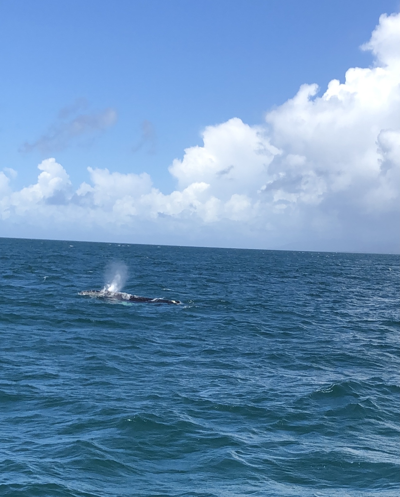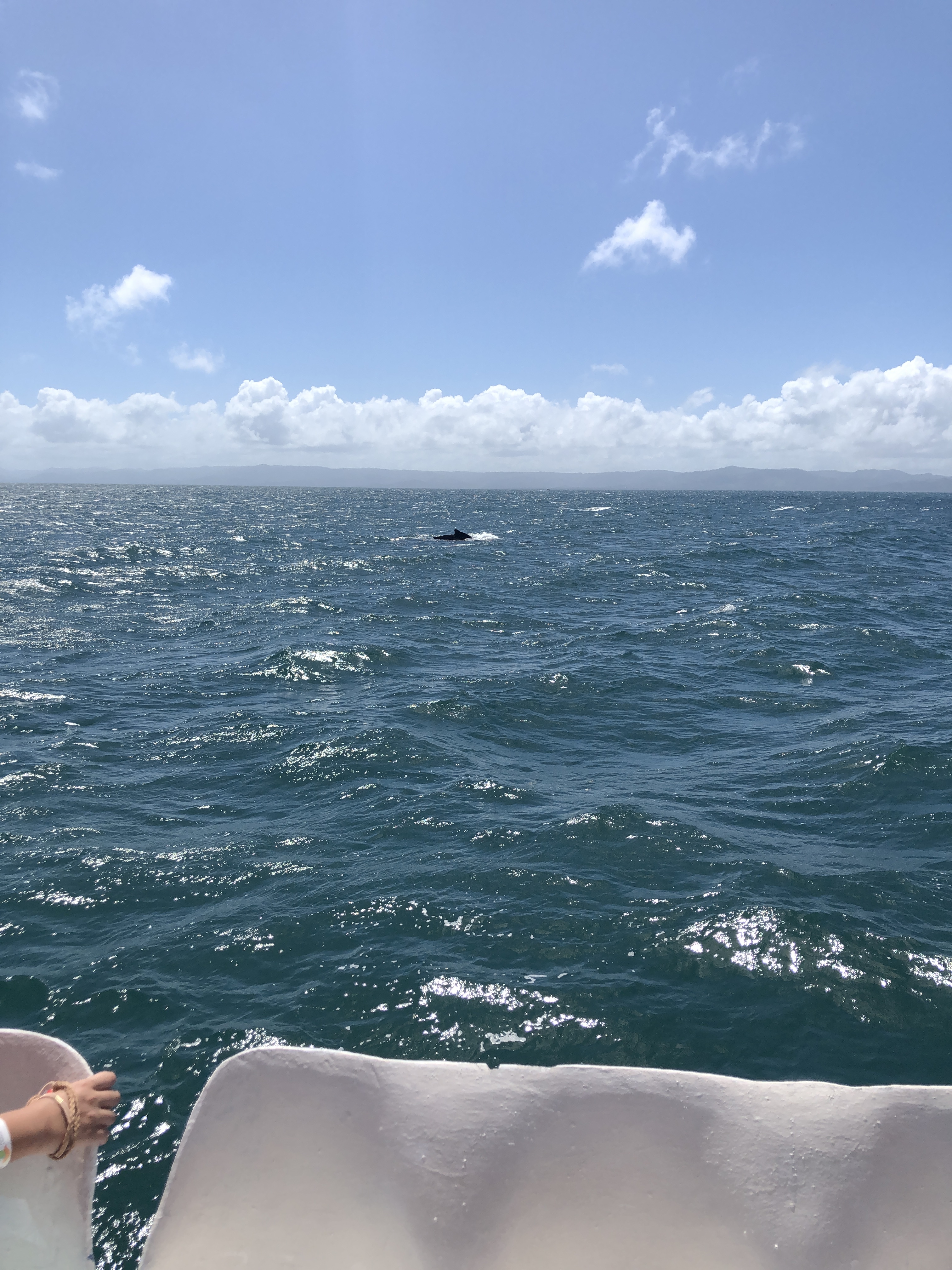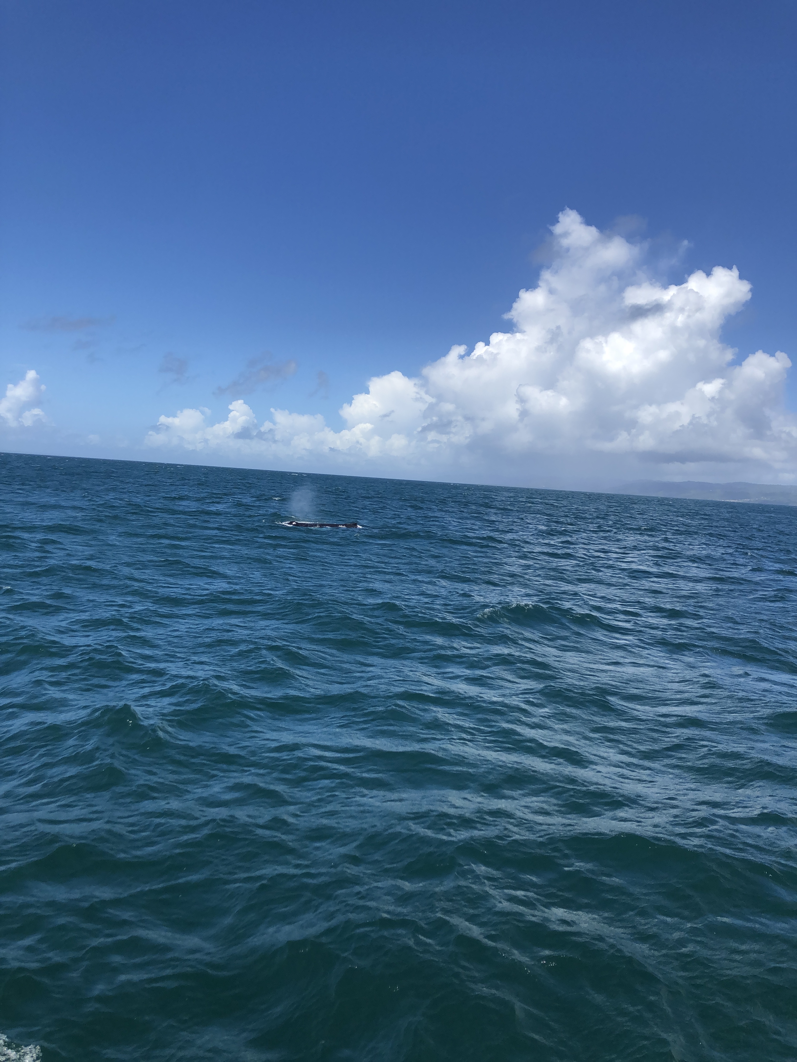 Ich buchte eine Tour, um beides miteinander zu verbinden. Von meinem Hostel wurde ich mit einem Motorrad abgeholt. Gruselig. Das erste mal in meinem Leben, dass ich auf einem Motorrad saß. Ohne Helm! Aber ich hab überlebt. Zum Glück. Am Hafen ging es dann auch direkt aufs Boot und raus aufs Meer. Nach kurzer Zeit sprühte neben uns Wasser nach oben. Der erste Wal! Ein ausgewachsener Buckelwal. Einfach atemberaubend. Aber ich muss sagen, sie sehen ein bisschen aus wie sehr sehr große Schweinswale. Und was mich noch verblüfft hat, war, dass alle ihre Bewegungen fast wie in Zeitlupe erscheinen. Sie sprühen Wasser, tauchen langsam wieder ab, erst sieht man die Rückenflosse und dann die Schwanzflosse. So als hätte jemand das ganze in Slow Motion abgespielt. Sehr Respekt-einflößend!
