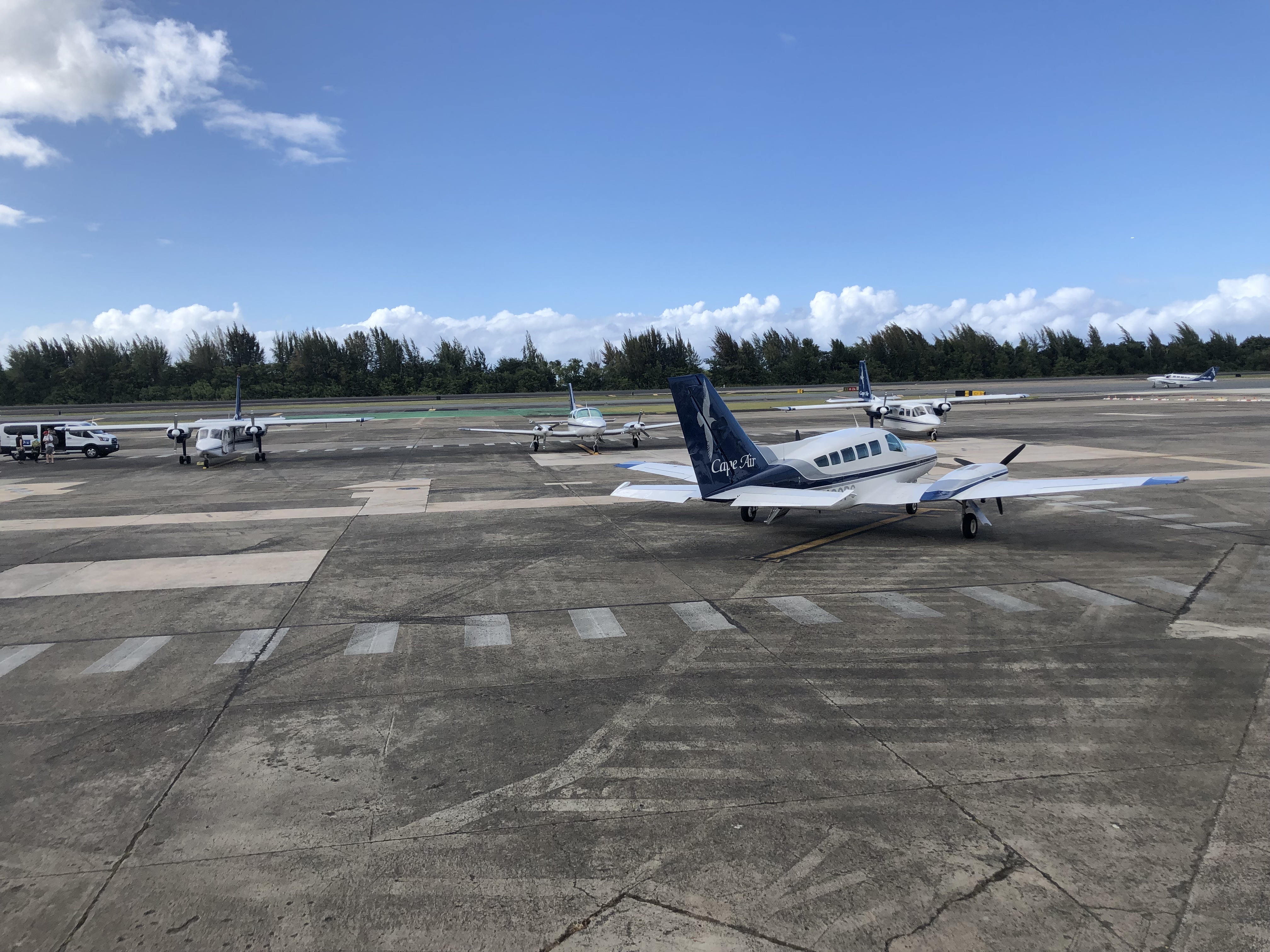 Schon der Check in für den Flug auf die amerikanischen Jungferninseln war besonders. Ich musste angeben, wie viel ich wiege! Alles (inklusive Handgepäck) wurde genauestens ausgewogen. Die Mitarbeiterin meinte, dass es eine kleine Maschine sei und sie diese ausbalancieren müssten. Okay, ich bin in Neuseeland auch schon mit kleinen Flugzeugen geflogen und dachte mir erst einmal nichts weiter. Am Gate hab ich mich dann doch gewundert, warum nur so wenig Menschen dort waren. Als der Flug dann aufgerufen wurde, stand ich auf, eine Familie und noch ein anderer Fluggast. Das wars. Ich dachte nur: Ohh, warum will denn keiner nach ST. Thomas? Aber als ich dann das Flugzeug sah, wurde mir klar, dass auch nicht mehr Leute mitkonnten. Es war das kleinste Verkehrs-Flugzeug, das ich je gesehen habe: 8 Sitzplätze inklusive Pilot. Der Pilot nahm unser Handgepäck entgegen und verstaute alles in der Schnauze des Flugzeugs. Ich durfte auf dem Co-Piloten Sitzt sitzen. Das war allerdings ziemlich cool! Wir flogen erst einmal an der Küste von Puerto Rico entlang, dann an Culebra vorbei und noch ein bisschen über den Ozean und dann waren wir auch schon da. Der Flug ging ganze 19 Minuten. Er war aber sehr beeindruckend. Dadurch, dass das Flugzeug so klein war, mussten wir nicht so weit oben fliegen. Die Sicht war einfach krass. Man konnte aus dem Flugzeug bis auf die Korallenriffe sehen. So klar war das Wasser. Leider musste man sein Handy während des Fluges ausstellen, aber das war eine Sicht, die ich nie wieder vergessen werde! Der Pilot meinte nach dem Flug zu mir: „Das war dein erster Flug in so einem kleinen Flugzeug? Man hat deine Begeisterung im Gesicht gesehen!“ Er hatte recht: Ich war echt beeindruckt!