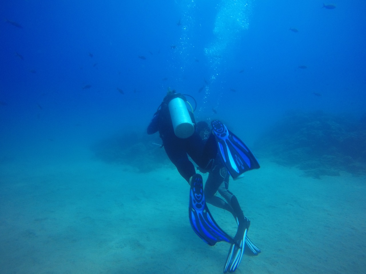 Magisch. Beim ersten Tauchgang sah ich neben einigen Riffhaien und riesigen Rochen auch eine Meeresschildkröte. Beim zweiten Tauchgang schwammen Papageien-Fische um uns. Magisch. Da dies ja mein erster Tauchgang nach dem Schein war, nahm der Tauchinstructor mich an die Hand. Ich muss echt sagen, ich hab mich Unterwasser noch nie unsicher gefühlt. Es ist einfach ein magisches Erlebnis, einen kleinen Eindruck von diesem so anderen, so bunten, ruhigen und wunderschönem Lebensraum zu erlangen. Und ja, ich bin mitlerweile stolze Besitzerin eines Fischbestimmungs-Buches!