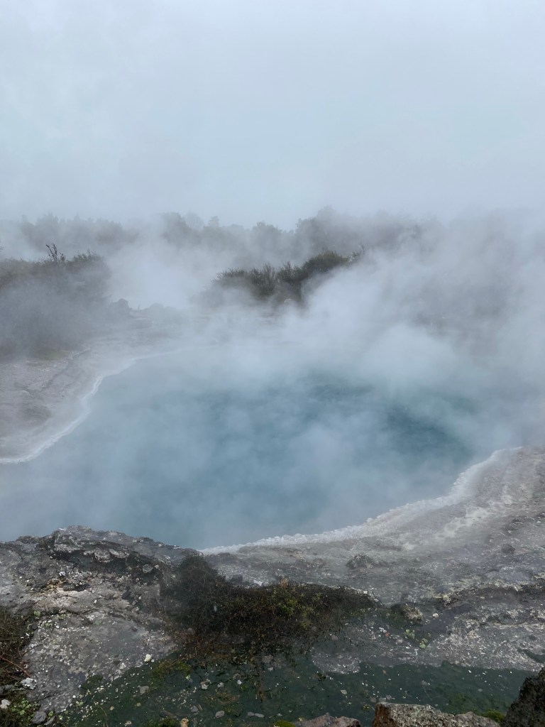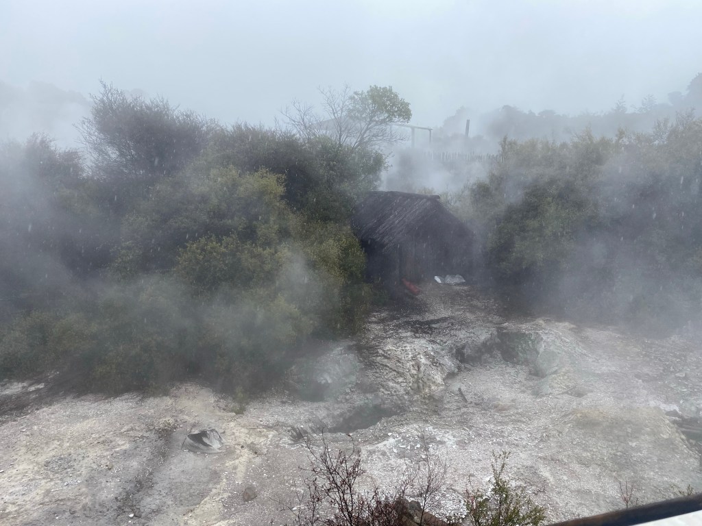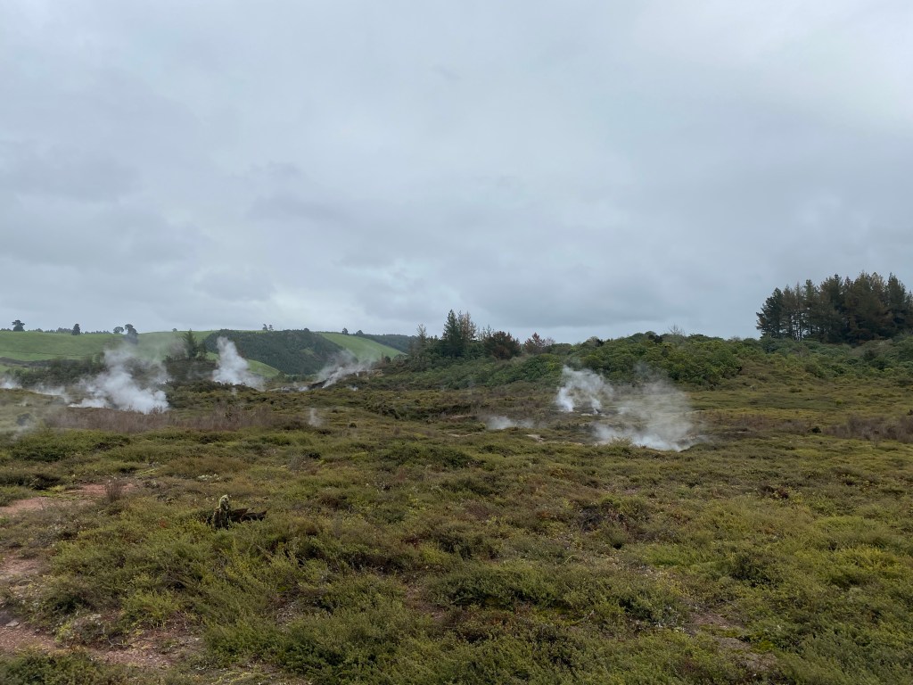 Neuseeland ist vulkanischen Ursprungs. Und viele Vulkane sind immer noch aktiv. Es soll Thermalquellen geben, Geysire, heiße Quellen… Auf nach Rotorua!